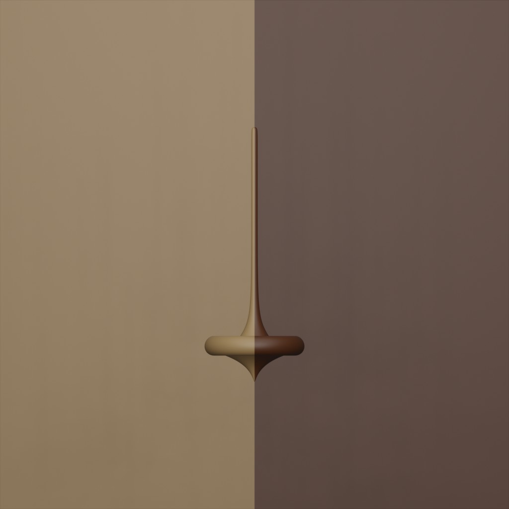 **PIRLA #2752 - 15, TORTILLA + PECAN - 2022.** 99x99 PIRLA is a collection of 9801 unique generative spinning tops. 99 colours. Each three-dimensional rotational solid is generated by a nurbs of 10 to 37 geometrical control points. [https://pirla.re/99x99/2752](https://pirla.re/99x99/2752)