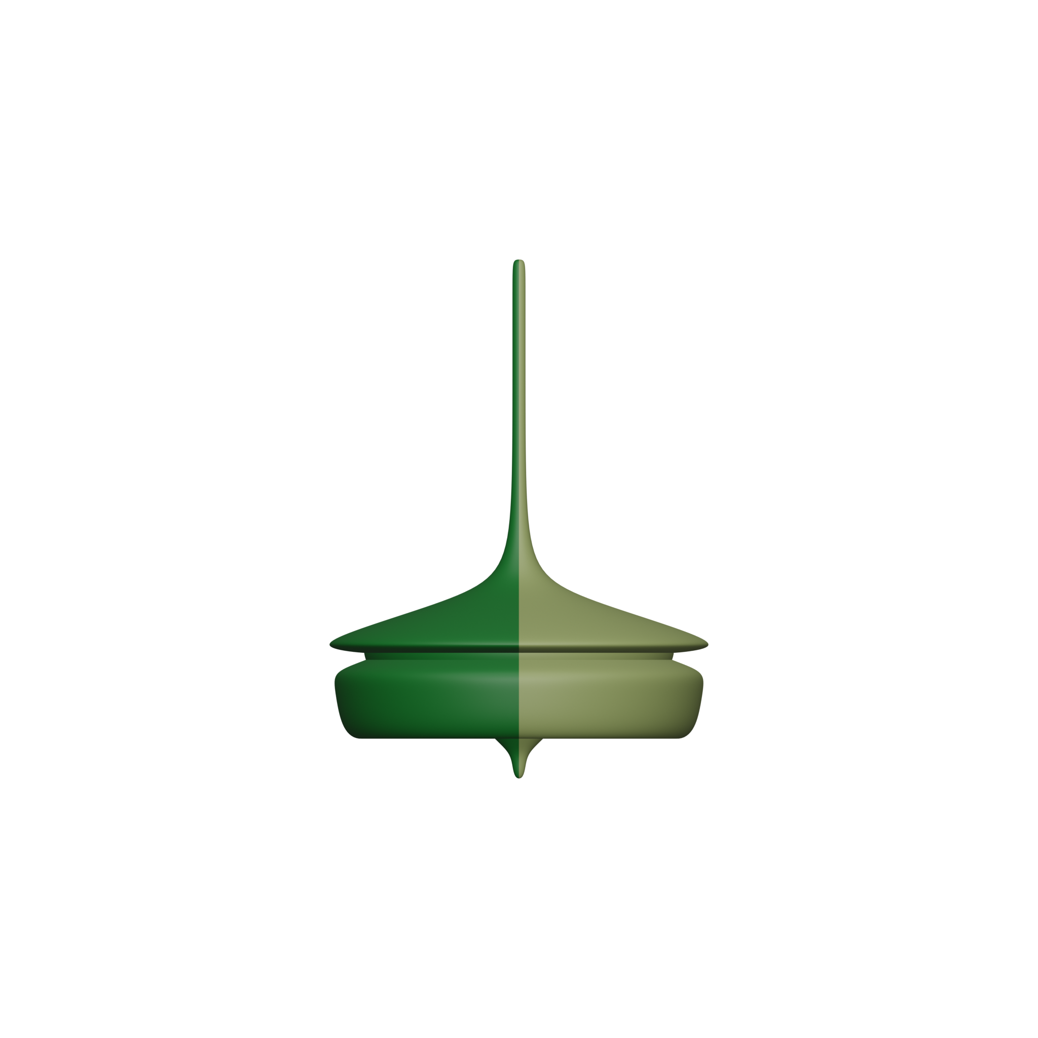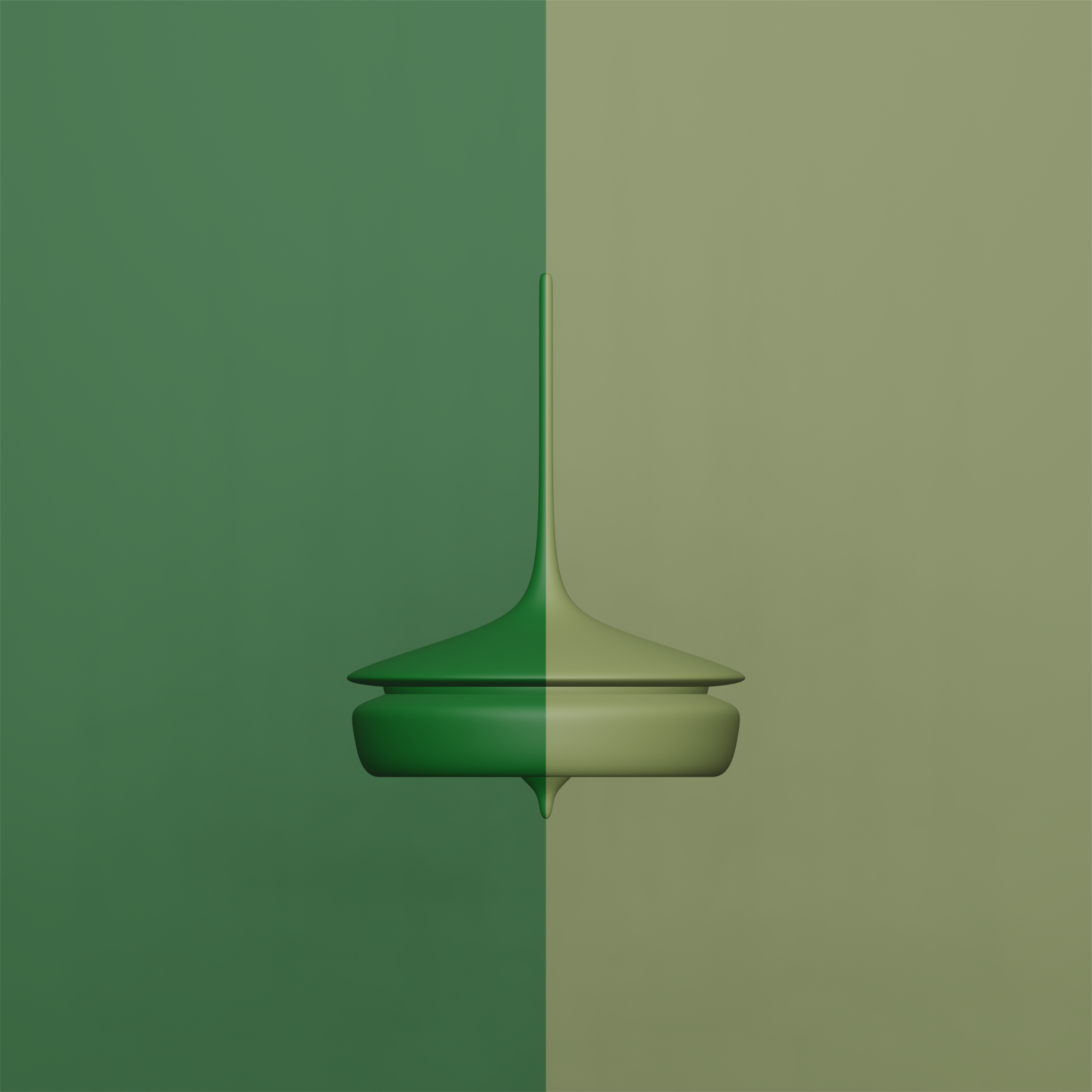 **PIRLA #3722 - 26, FOREST + MOSS - 2022.** 99x99 PIRLA is a collection of 9801 unique generative spinning tops. 99 colours. Each three-dimensional rotational solid is generated by a nurbs of 10 to 37 geometrical control points. [https://pirla.re/99x99/3722](https://pirla.re/99x99/3722)