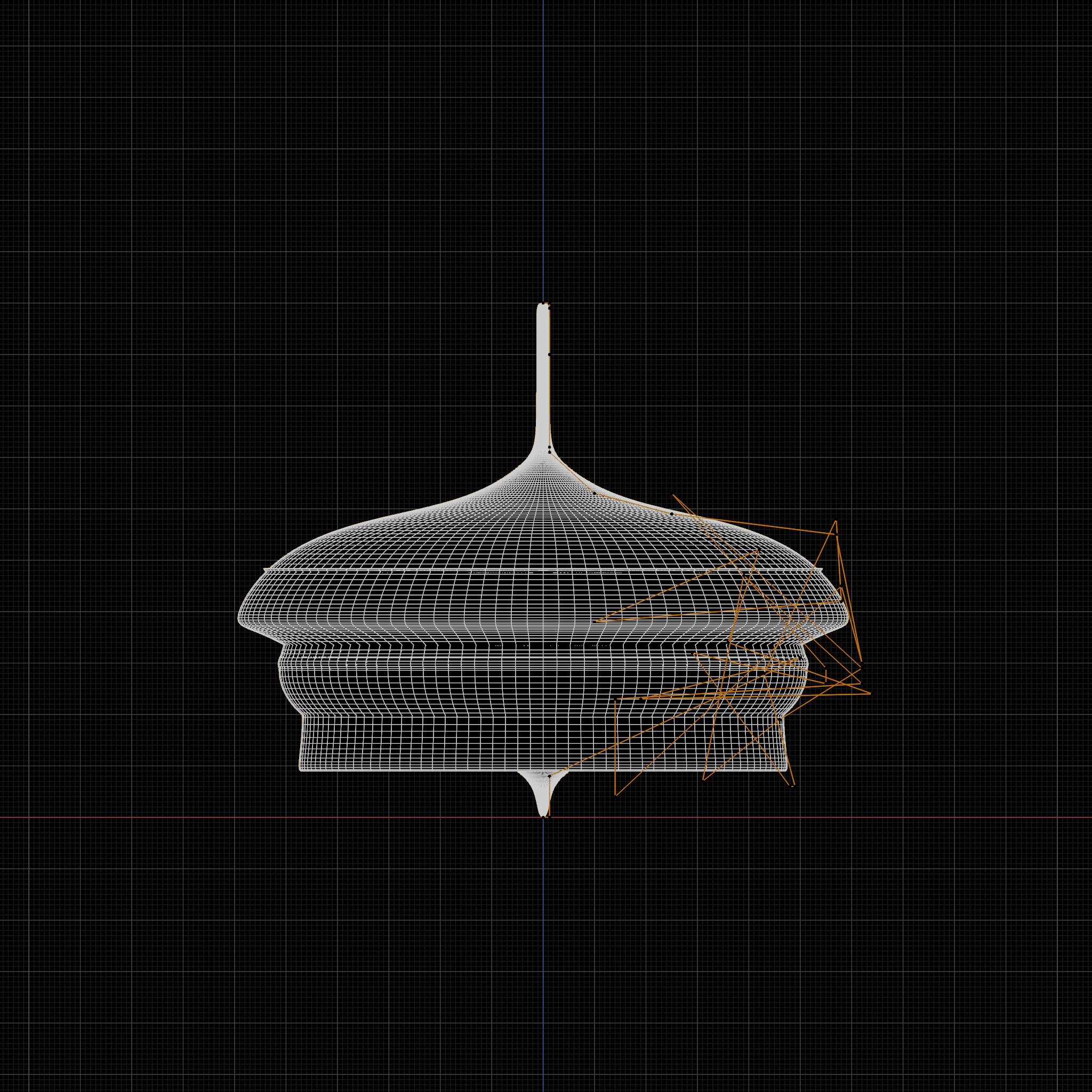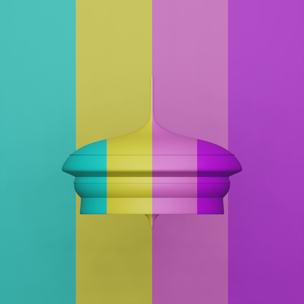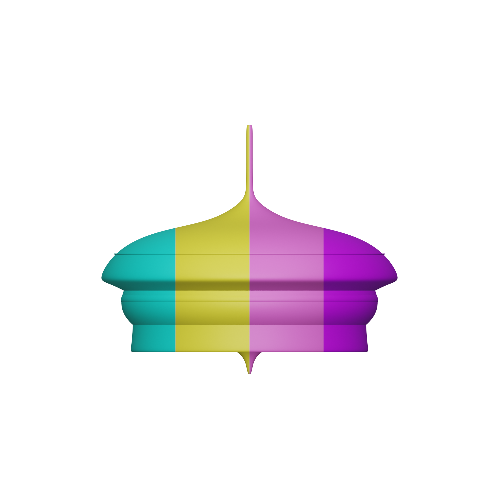 **PIRLA #3853 - 37, NEON #4 - 2022.** 99x99 PIRLA is a collection of 9801 unique generative spinning tops. 99 colours. Each three-dimensional rotational solid is generated by a nurbs of 10 to 37 geometrical control points. [https://pirla.re/99x99/3853](https://pirla.re/99x99/3853)