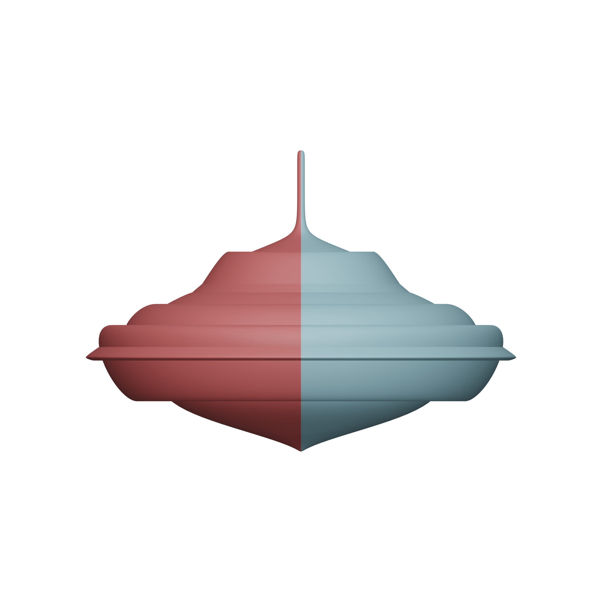 **PIRLA #4919 - 31, INDIAN + SKY - 2022.** 99x99 PIRLA is a collection of 9801 unique generative spinning tops. 99 colours. Each three-dimensional rotational solid is generated by a nurbs of 10 to 37 geometrical control points. [https://pirla.re/99x99/4919](https://pirla.re/99x99/4919)