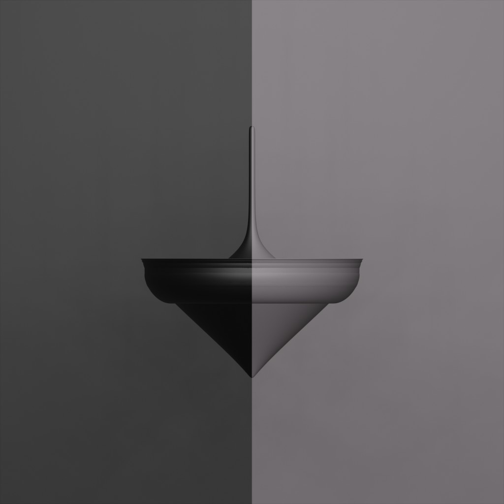 **PIRLA #9553 - 31, BLACK + GRAY - 2022.** 99x99 PIRLA is a collection of 9801 unique generative spinning tops. 99 colours. Each three-dimensional rotational solid is generated by a nurbs of 10 to 37 geometrical control points. [https://pirla.re/99x99/9553](https://pirla.re/99x99/9553)